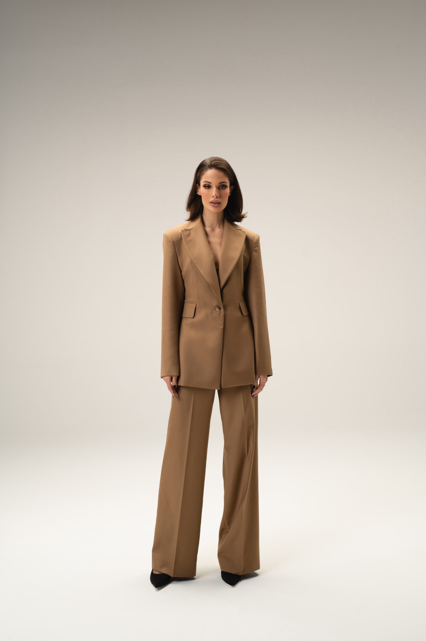 Beige Suit – Elegant and understated, this beige blazer and coordinated pants are designed for a polished appearance at any event or office setting.