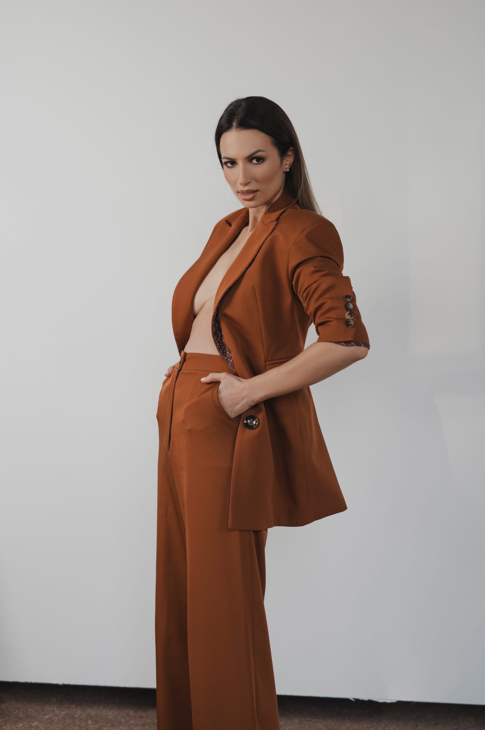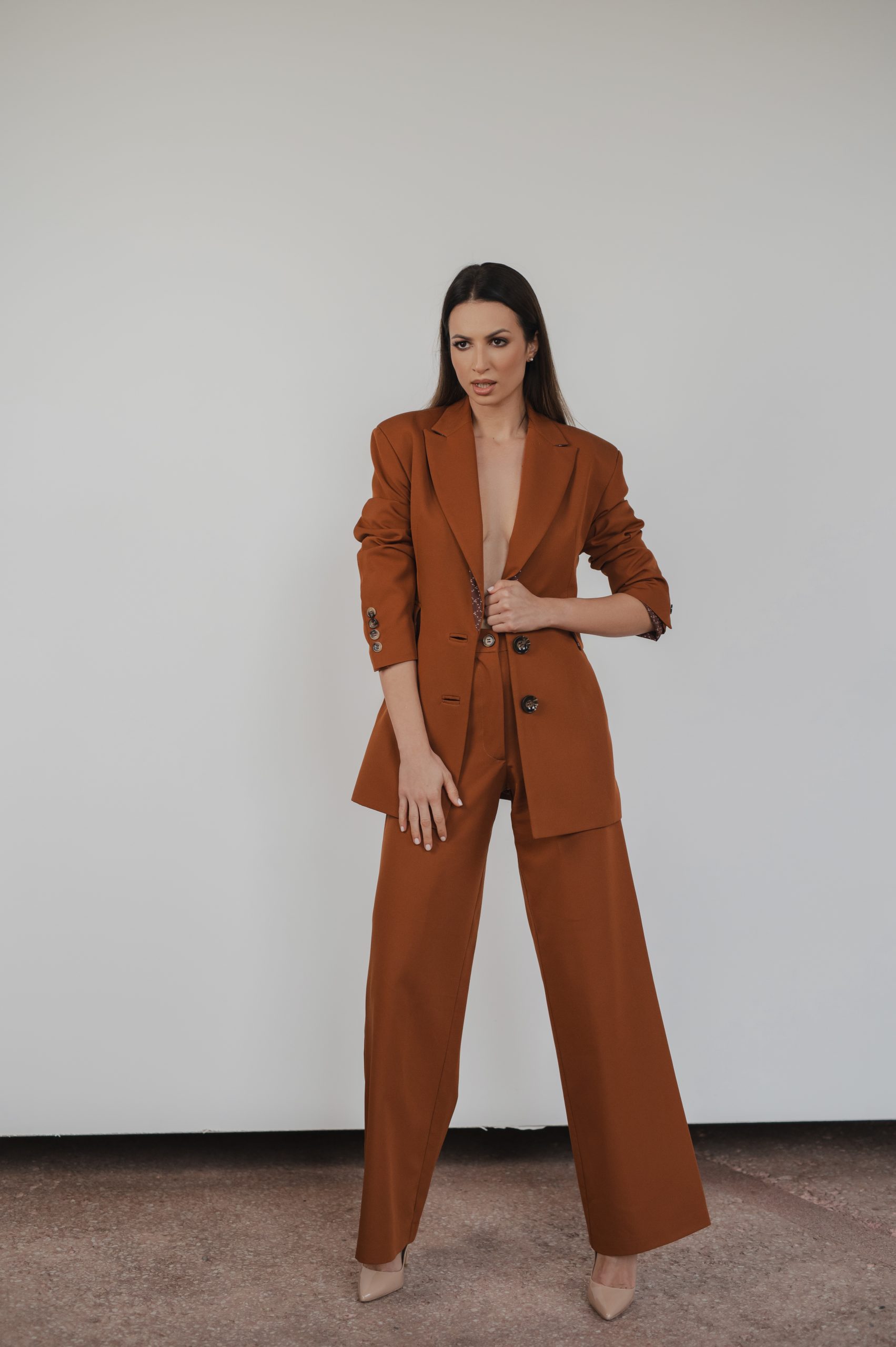 Burnt Orange Suit – Stand out in style with this vibrant orange blazer and matching pants. Perfect for those who want to make a bold yet chic statement at formal or festive events.